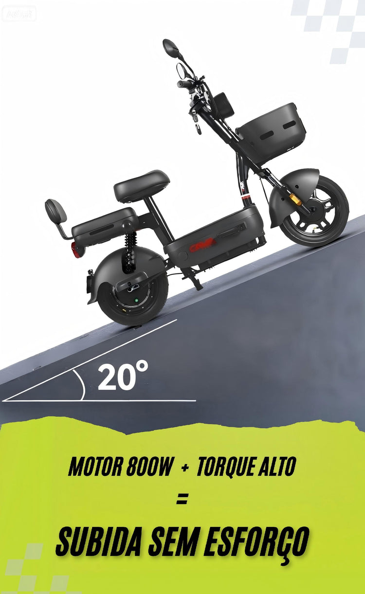AE7 Bicicleta Elétrica — MAIS AUTONOMIA E MAIS VELOCIDADE PARA IR MAIS LONGE O destaque da AE7 scooter eletrica é claro: vai mais longe e mais rápido. Com bateria de 48V/15Ah e velocidade máxima de 50km/h, ela entrega mobilidade de alto desempenho sem abrir mão...