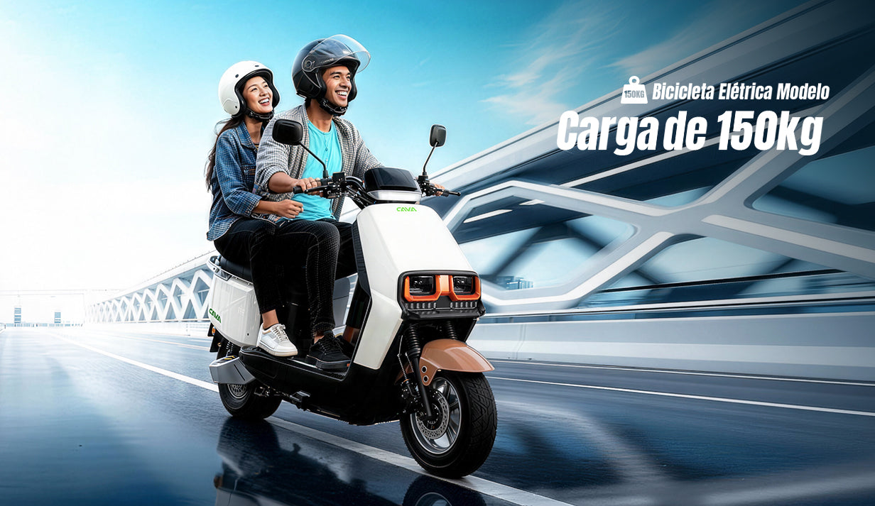 Estrutura reforçada e design robusto permitem transportar até 150 kg com estabilidade e segurança, perfeito para duas pessoas ou transporte de cargas.