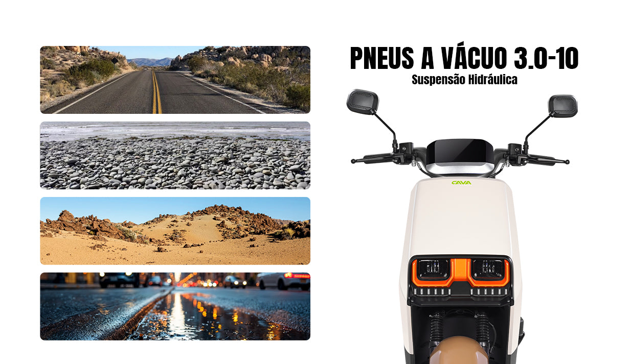 Os pneus a vácuo proporcionam melhor aderência, maior resistência a furos e condução mais estável, garantindo segurança e conforto em diferentes tipos de terreno.